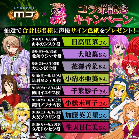 セガNET麻雀『MJ』シリーズと『戦国乙女』のコラボイベント”第3回戦国乙女CUP”が開催されます。