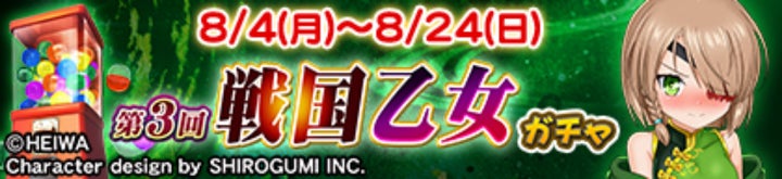 また、進化型SPキャラや卓背景、EX背景などのアイテムが登場するイベントpt特典や、ガチャで『戦国乙女』のキャラクターが登場。