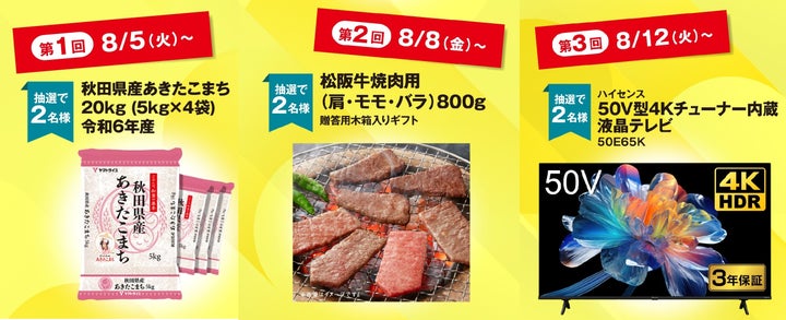 豪華賞品として、PlayStation®5本体や秋田県産あきたこまちなどが当たる。