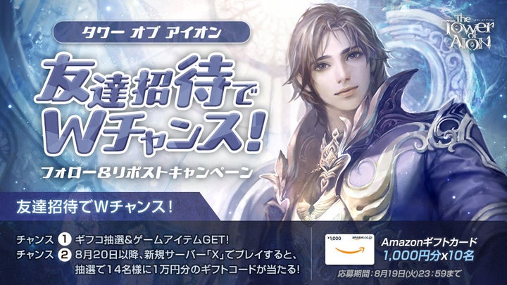 『タワー オブ アイオン』の運営会社エヌ・シー・ジャパンは、2025年8月8日(金)19時より公式生放送「08.20リニューアル記念スペシャル事前生放送」を配信します。