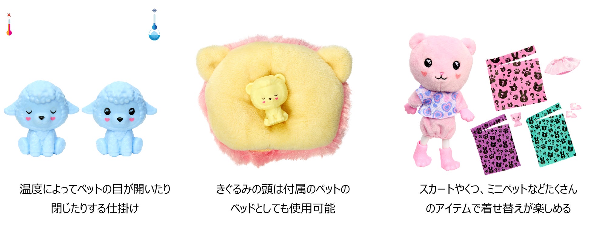 さらに、温度によって髪の色やペットの目が変化する仕掛けもあります。