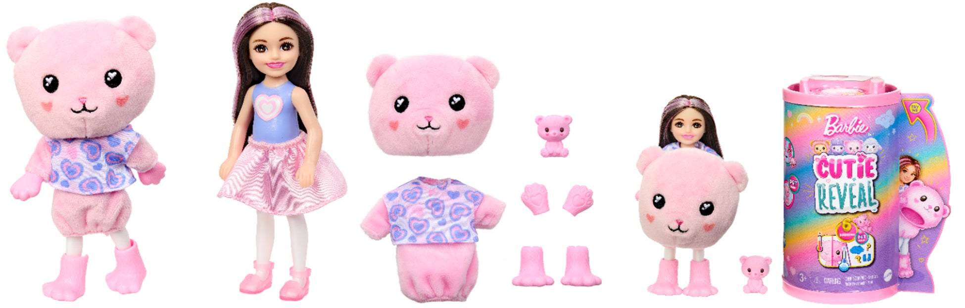 - バービーとチェルシーがきぐるみを着たシリーズがあり、着せ替え遊びが楽しめる