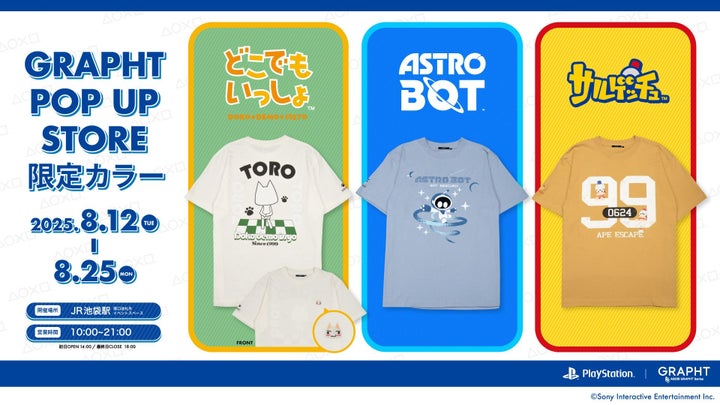 MSY株式会社が展開するブランド『GRAPHT』は、PlayStation(TM)公式ライセンス商品を集めたポップアップストア『PlayStation(TM) Official Licensed POP UP STORE by GRAPHT』をJR池袋駅で2025年8月12日から25日まで開催します。