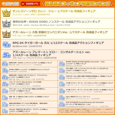- 2025年7月あみあみフィギュア月間ランキングが発表された。