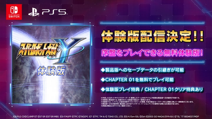 - 『スーパーロボット大戦Y』体験版がNintendo Switch/PlayStation 5で配信開始。