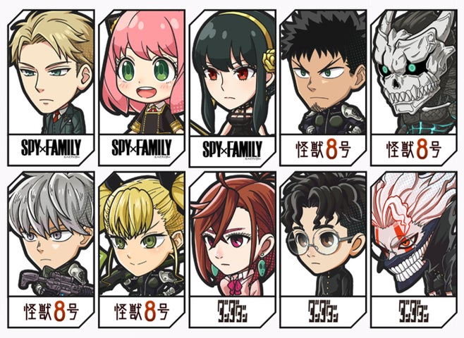 ゲームは漫画のコマをモチーフにしたタワーオフェンスで、アーニャや怪獣8号、オカルンなど、多数のキャラクターが登場する。