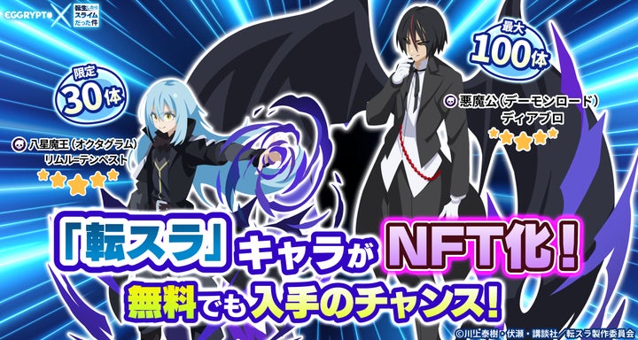 - NFTゲーム「EGGRYPTO」とアニメ「転生したらスライムだった件」のコラボイベントが8月15日より開催。