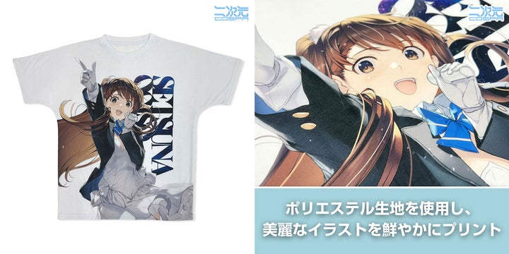 • フルグラフィックシームレスTシャツ、抱き枕カバー、アクリルアートスタンドなどがラインナップ。