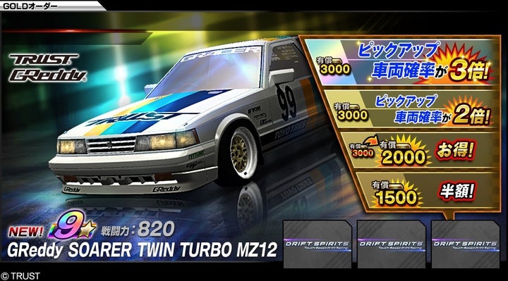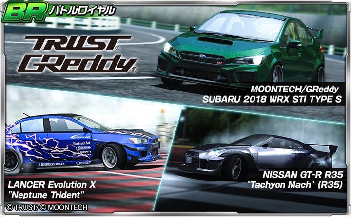 スマートフォン向けレースゲーム「ドリフトスピリッツ」で、“TRUST/GReddy”と“MOONTECH”のコラボイベントが開催。