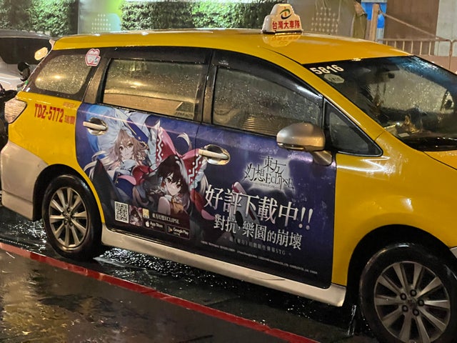 台北地下街での吊り下げ広告や壁面広告、漫画博覧会での神社風ブース出展、メイドカフェとのコラボ、交流イベント、バス・タクシー広告など、様々な形で『ゲンリプ』の世界観を表現しています。