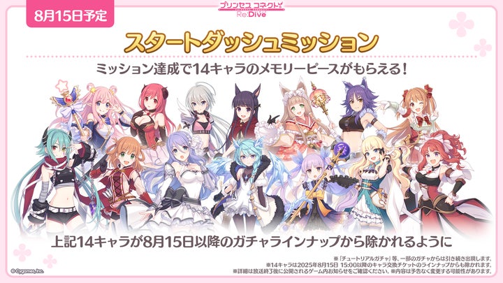 - 8月15日から「スタートダッシュミッション」を開催し、★3キャラを最大26キャラ獲得可能。