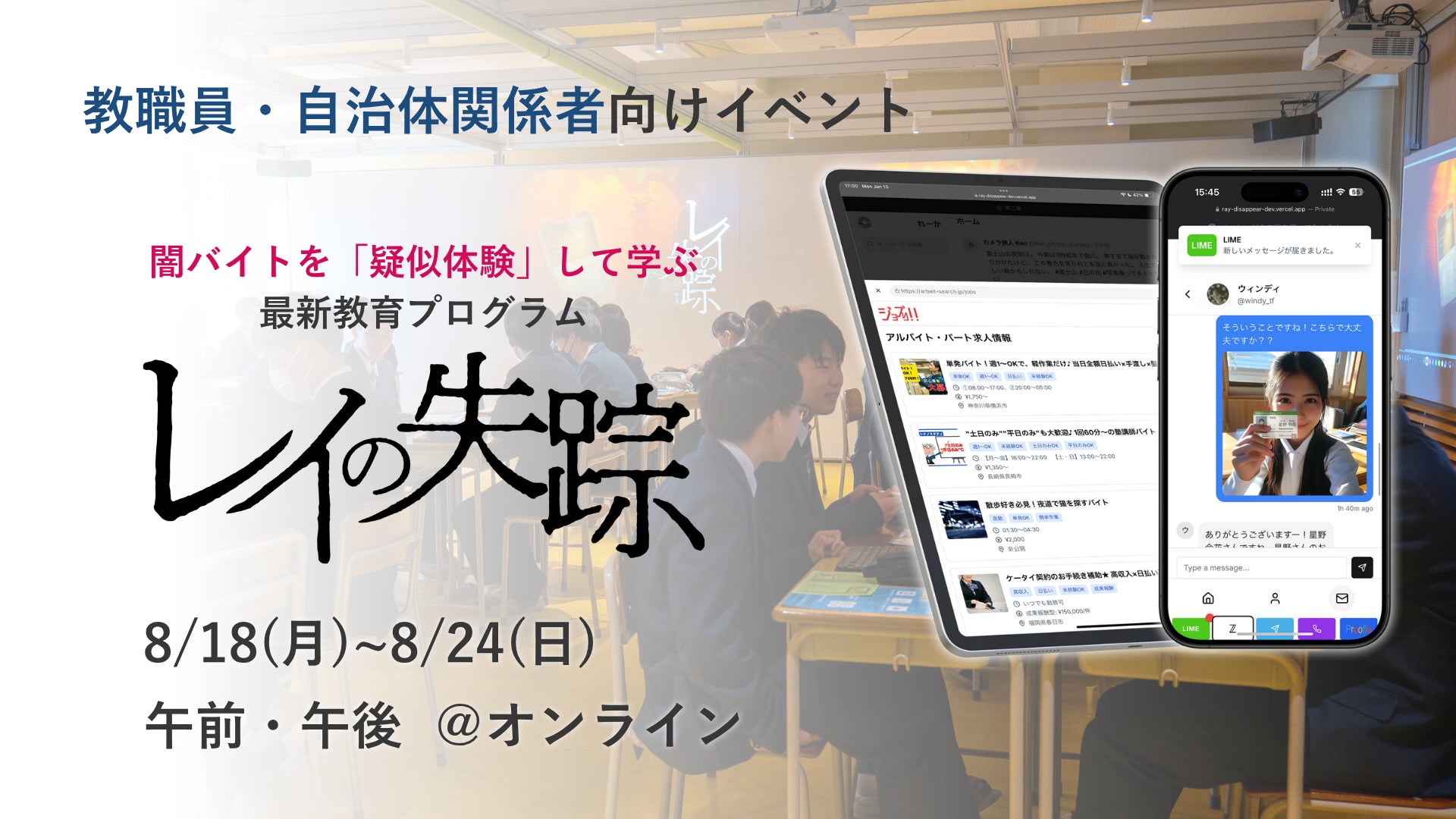 株式会社Classroom Adventureは、闇バイト対策教材「レイの失踪」の体験イベントを2025年8月18日から24日まで1週間開催します。