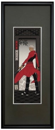 - 江戸伝承の手彫りと手摺りの木版技術で聖騎士の姿を表現、限定300部で販売。