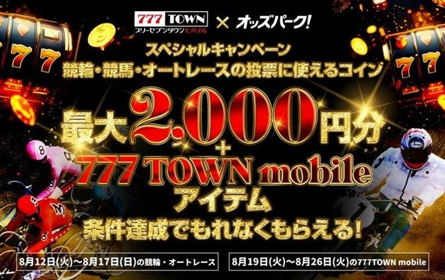 - 「777TOWN mobile」と「オッズパーク」のコラボキャンペーンが8月12日より開催。