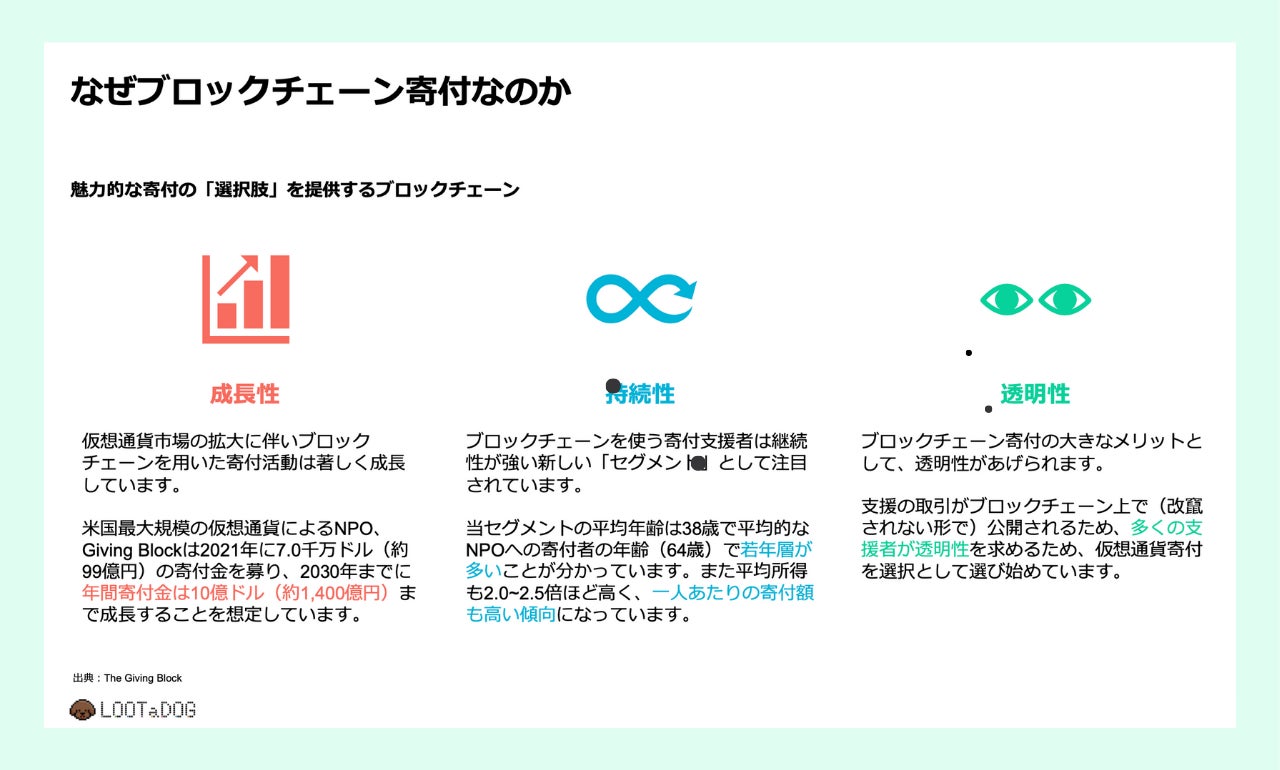 LOOTaDOGは、ブロックチェーン技術を使って保護犬・保護猫の支援に力を入れています。
