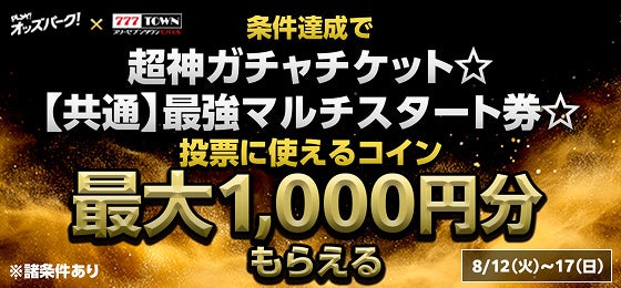 - オッズパークと777TOWN mobileがコラボキャンペーンを8月12日(火)より開始。