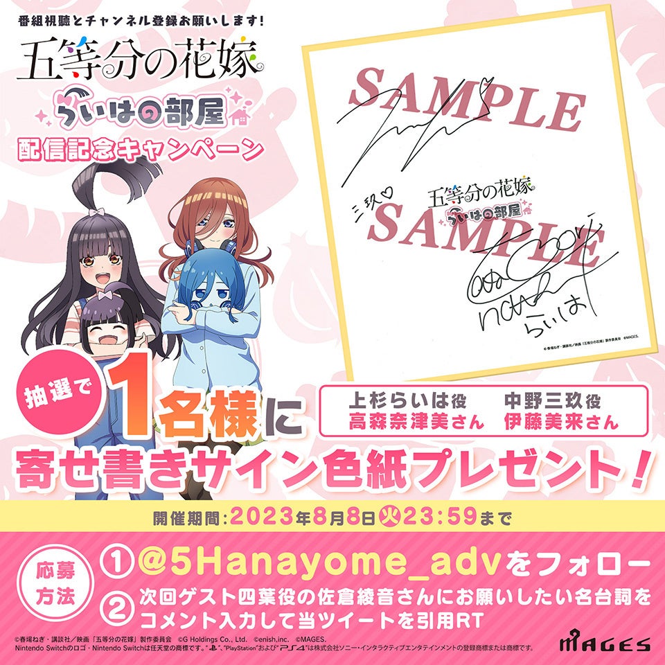 - 特別番組『五等分の花嫁 らいはの部屋』最終回配信