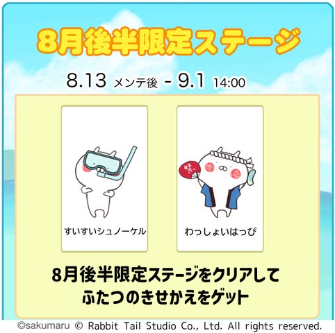 スマートフォン向けクッキングゲーム「うさまるキッチン」で、8月後半限定ステージが開催される。