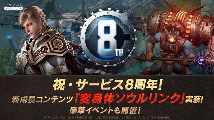 スマートフォン向けMMORPG『リネージュ2 レボリューション』がサービス開始8周年を迎えました。
