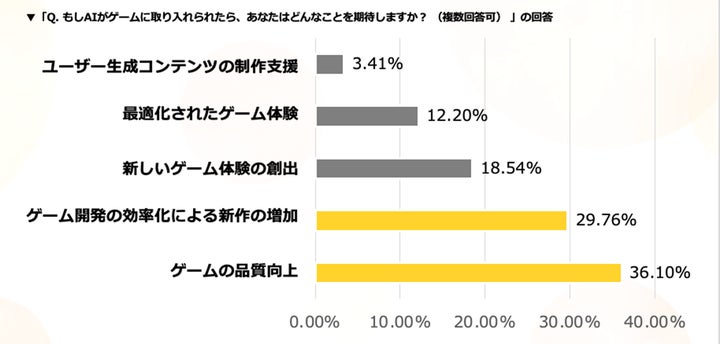 • 約66%のユーザーがAI活用に期待し、品質向上や新しいゲーム体験に期待。