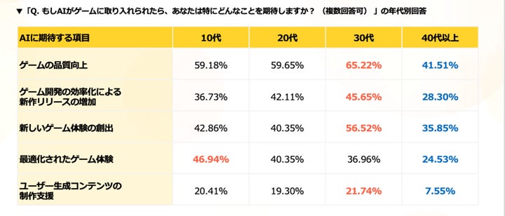 調査結果によると、約66%のユーザーがAI活用に期待を示し、ゲームの品質向上や新しいゲーム体験への期待が高い。