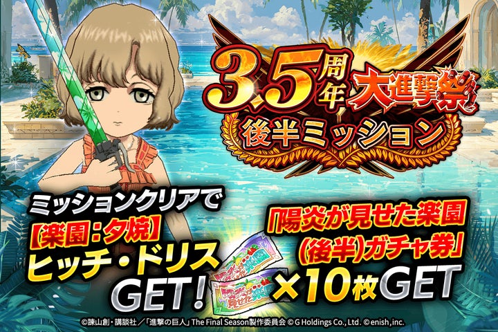 スマートフォンゲーム「進撃の巨人Brave Order」にて、3.5周年を記念した「ブレオダ3.5周年大進撃祭後半」が開催。