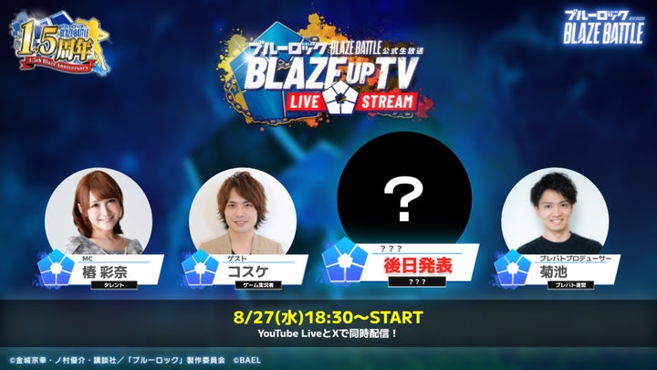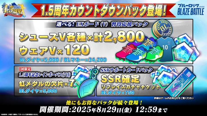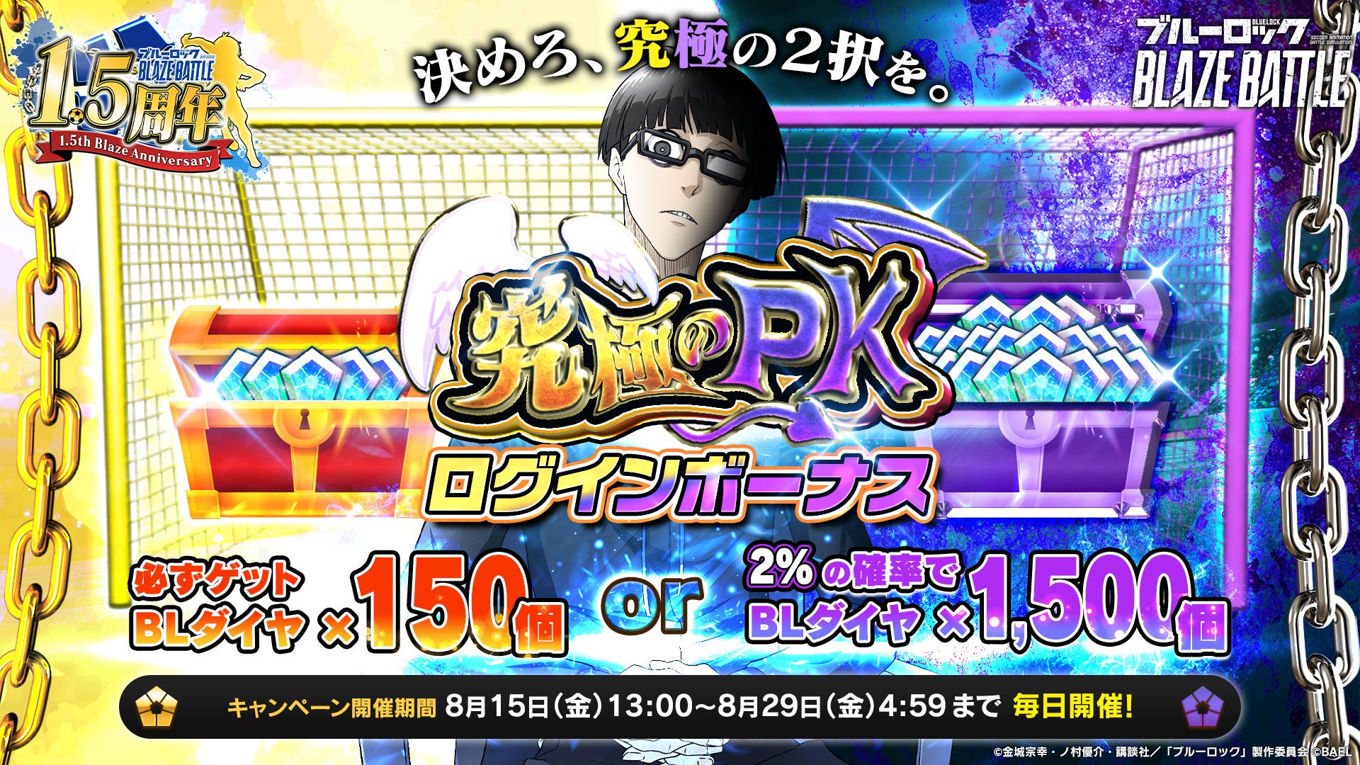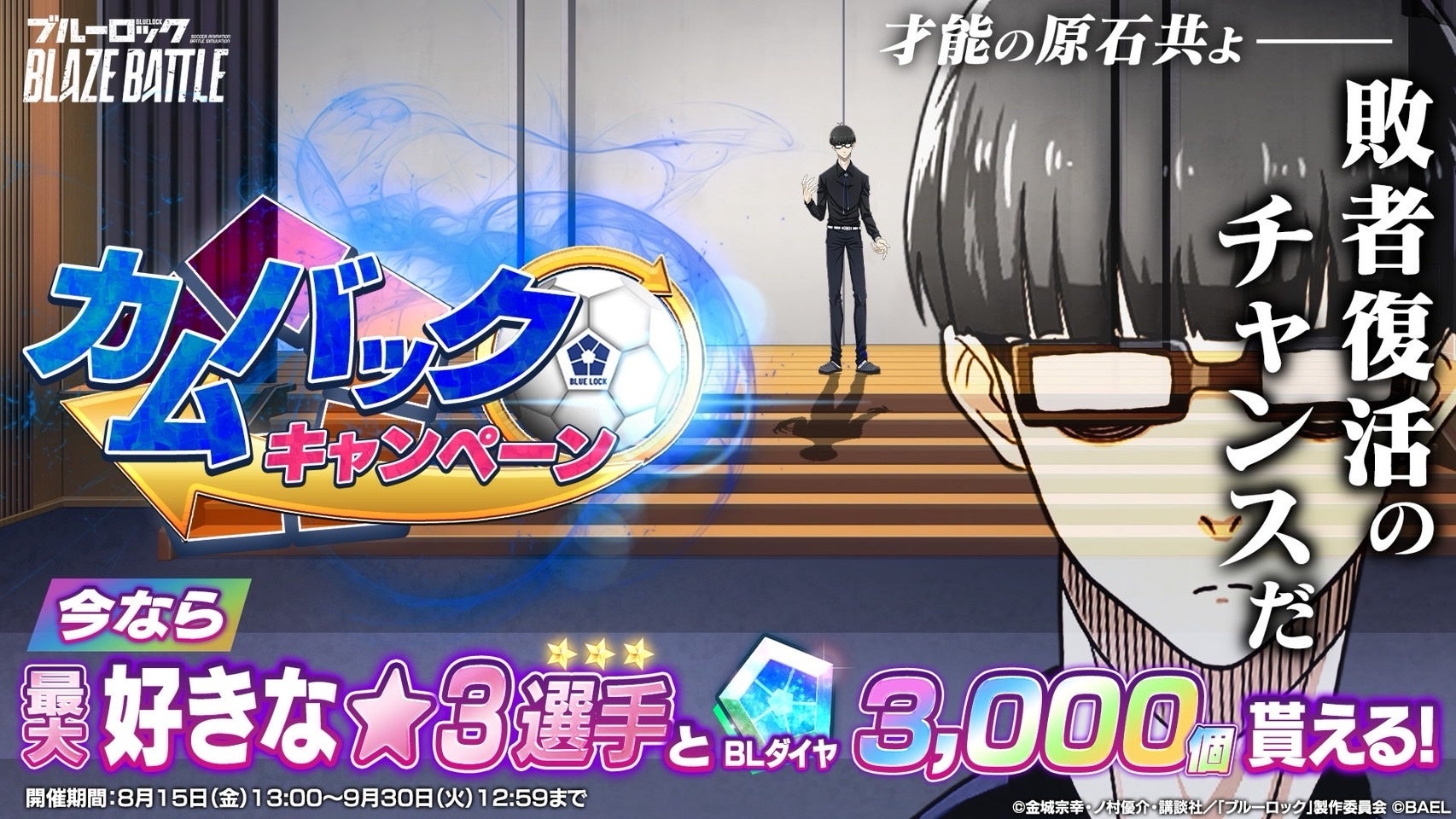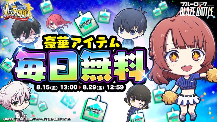 TVアニメ『ブルーロック』を原作とした3Dスマホゲーム『ブルーロック BLAZE BATTLE』(ブレバト)が、2025年9月1日に1.5周年を迎えることを記念し、8月15日より9大キャンペーンを開催する。