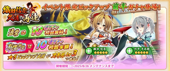 さらに、★5織田信奈と★5竹中半兵衛が登場する限定ガチャも開催。