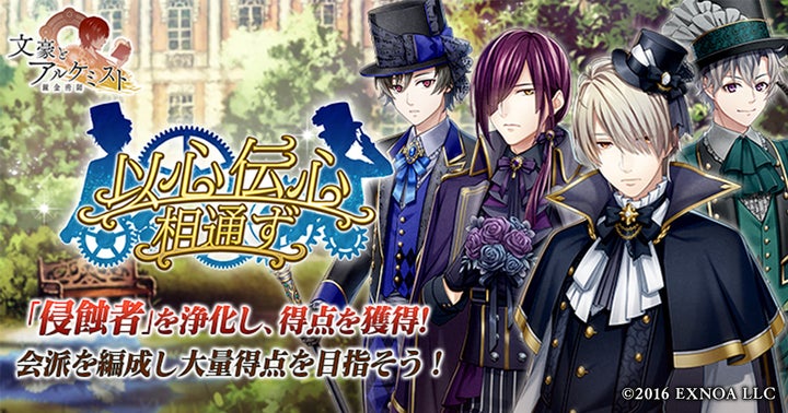 DMM GAMESの「文豪とアルケミスト」にて、イベント『調査任務「以心伝心相通ず」』と限定召装『以心伝心相通ず』が開催。