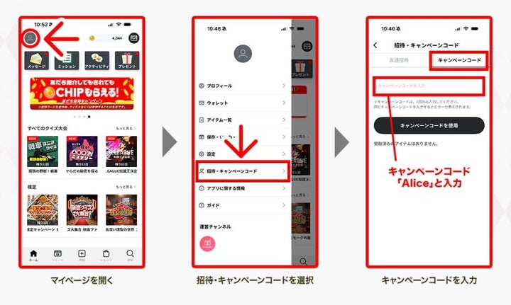 ルイス・キャロル原作の世界観をモチーフにした全30問のオリジナルクイズを『QAQA』上で出題し、参加者の中から抽選で映画鑑賞券をプレゼント。