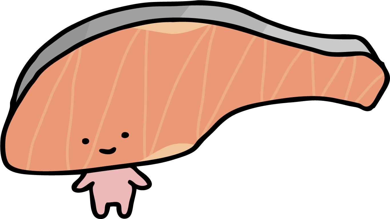 - 「しゃけ」の切り身をモチーフにしたキャラクター