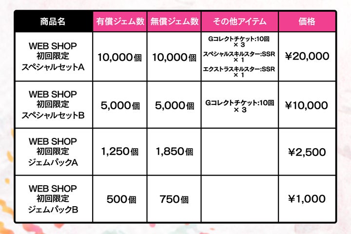 - ゲーム内有償アイテム「ジェム」がお得に購入できる。