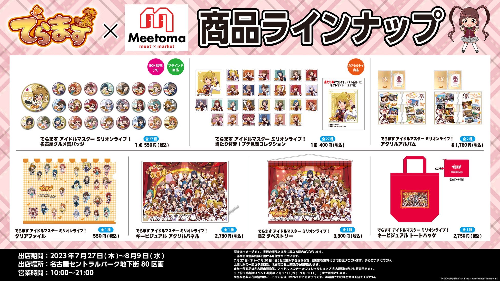 2023年7月27日から、名古屋で開催される「アイドルマスター ミリオンライブ!」とのコラボイベント「でらます」には、名古屋の企業や観光施設が参加し、限定のコラボグッズや商品が販売されます。