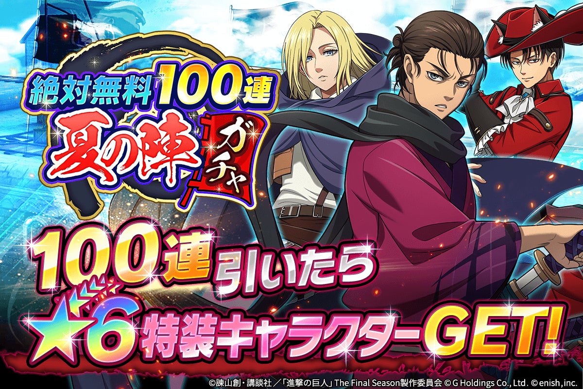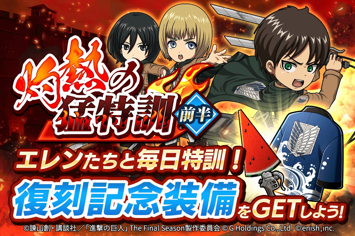 株式会社enishは、アニメ『進撃の巨人』の最新スマートフォンゲーム「進撃の巨人Brave Order」にて、「絶対カムバック夏の陣」キャンペーンを開催します。