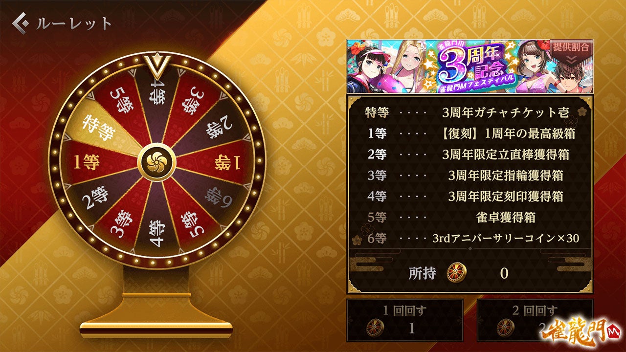 - 雀龍門M、3周年ショップ、3周年ガチャ、公式サイト
