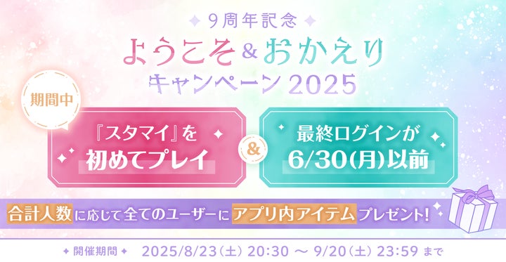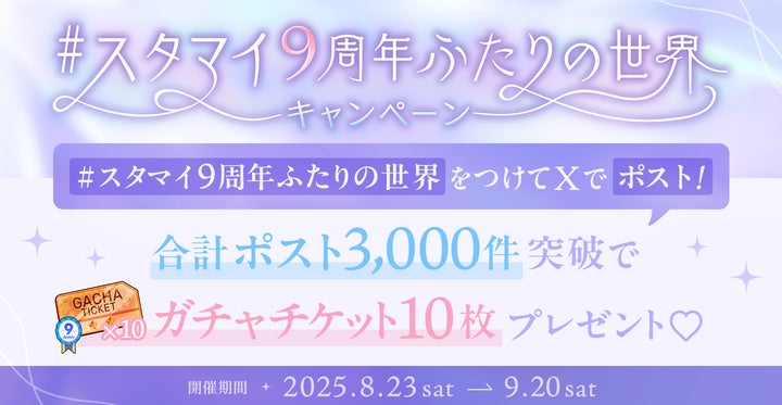 colyが提供するドラマチック恋愛パズルゲーム『スタンドマイヒーローズ(スタマイ)』がアプリ配信9周年を迎え、様々な記念企画を実施する。