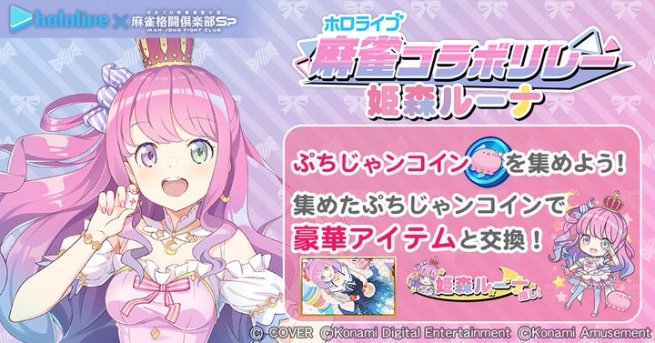 モバイルゲーム『麻雀格闘倶楽部Sp』にて、ホロライブ所属VTuber『姫森ルーナ』とのコラボイベント「ホロライブ麻雀コラボリレー 姫森ルーナ」が開催される。