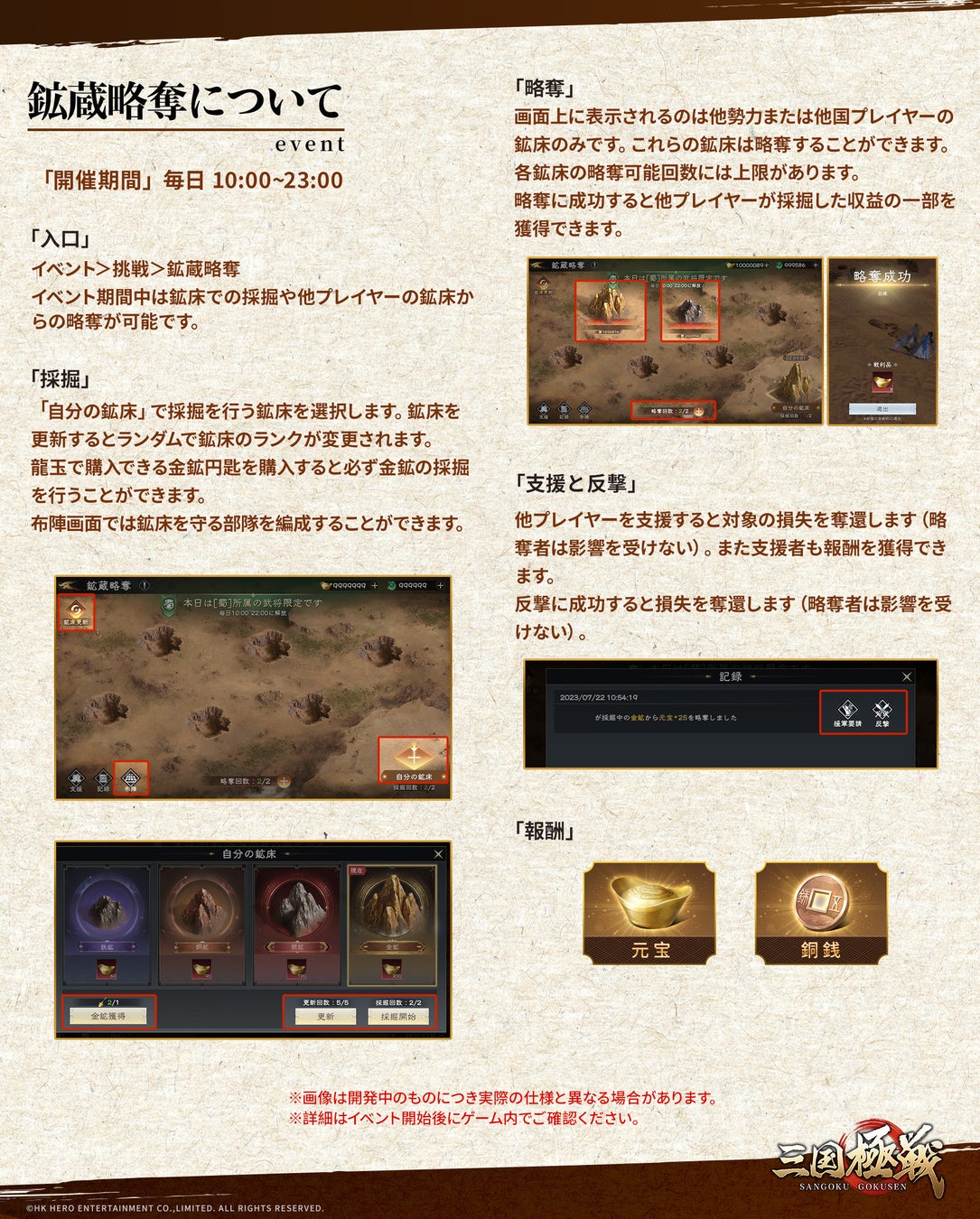 - 新武将「黄忠」や略奪イベント「鉱蔵略奪」、対戦イベント「天地争覇」などの新コンテンツが追加