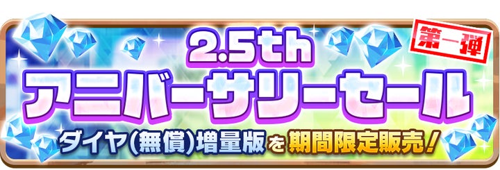 - 2.5周年記念イベントとして、最大200連無料ガチャやログインボーナスを実施。