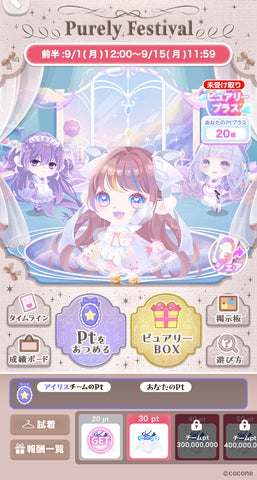14周年記念イベント「14th Purely Festival」では、チームに分かれてアイテムを集める新イベントや、新機能のアップデートを実施。