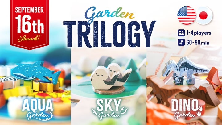 自然をテーマにしたユーロスタイルのボードゲームで、『アクアガーデン』のリニューアル版に加え、新作『スカイガーデン』『ディノガーデン』が登場。