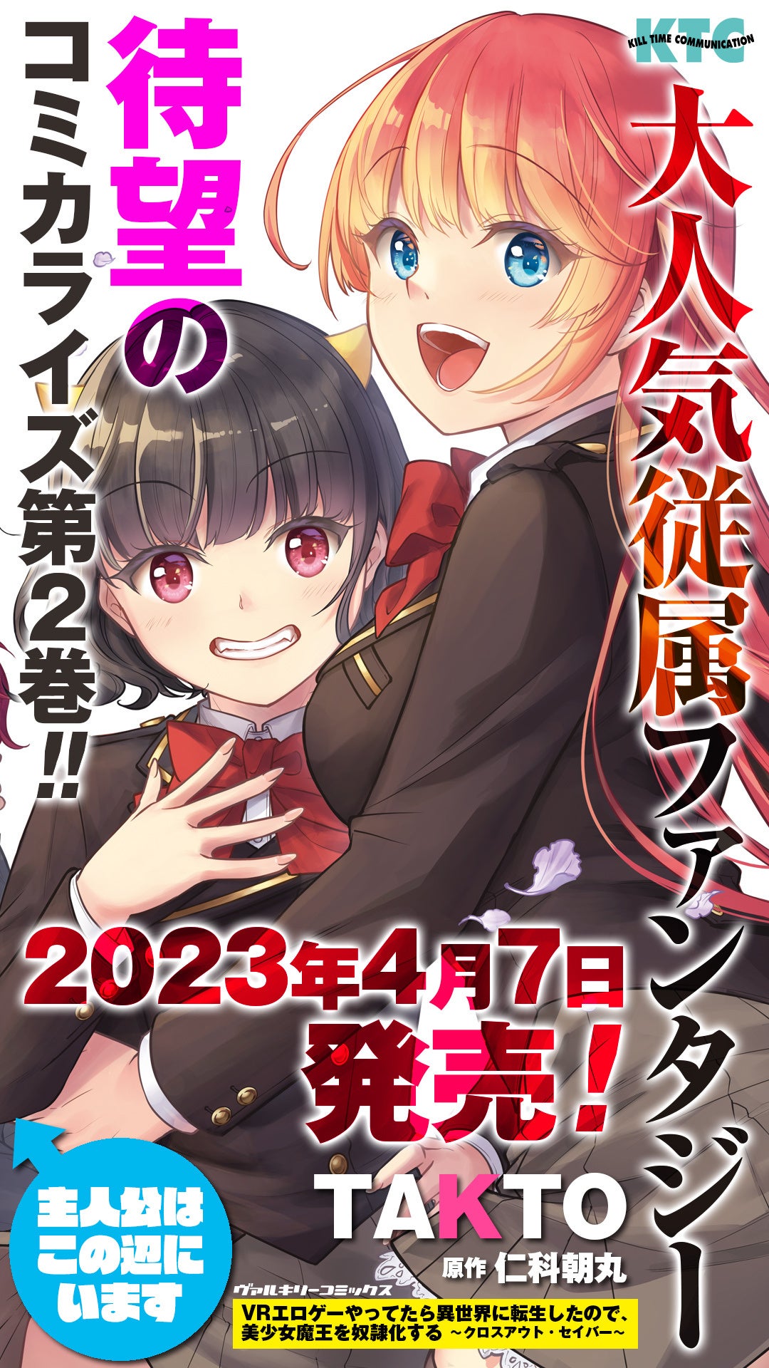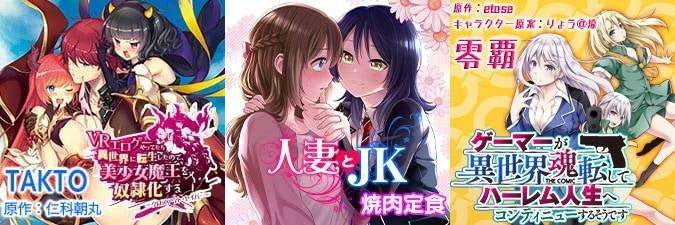 - ヴァルキリーコミックス、ゲーマーが異世界魂転してハーレム人生へコンティニューするそうです THE COMIC、VRエロゲーやってたら異世界に転生したので、美少女魔王を奴隷化する ~クロスアウト・セイバー~