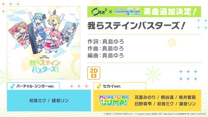 セガとColorful Paletteは、iOS/Android向けのリズム&アドベンチャーゲーム『プロジェクトセカイ カラフルステージ! feat. 初音ミク』に、柊マグネタイトさんとnyanyannya(大天才P)さんが新たな曲を提供することを発表しました。