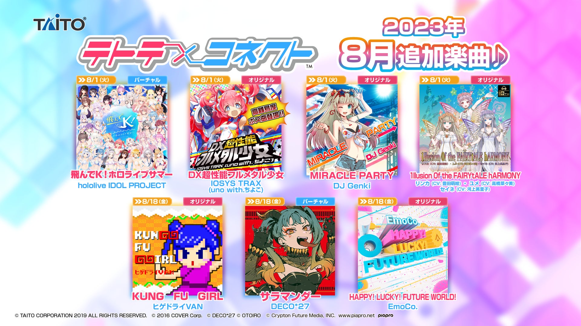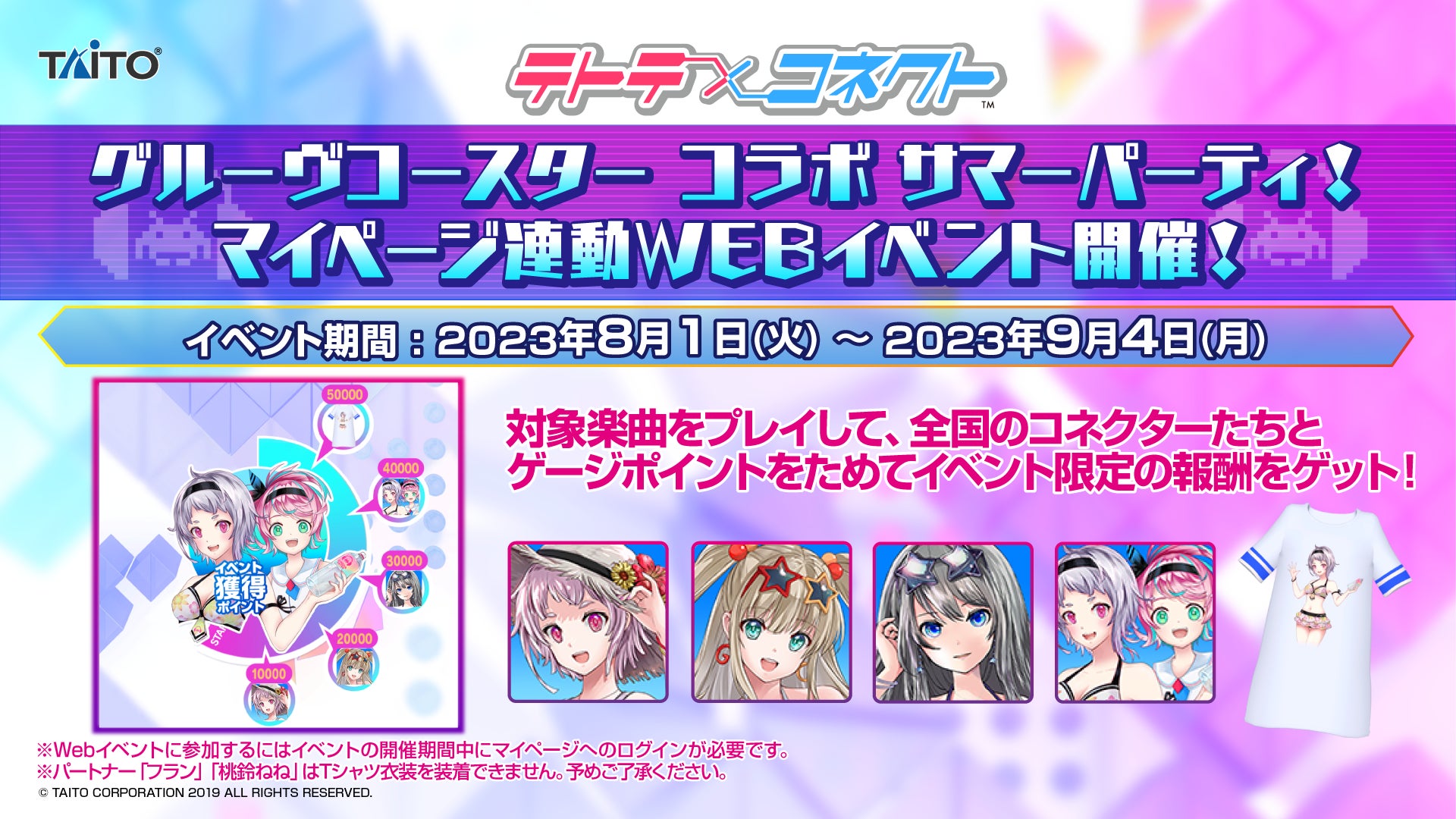 株式会社タイトーは、アーケード用リズムアクションゲーム『テトテコネクト』において、8月1日にアップデートを行い、『グルーヴコースター』とのコラボレーションイベントを開催します。
