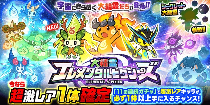 今回のイベントでは、期間限定レアガチャ「大精霊エレメンタルピクシーズ」に新キャラクター「樹木の精霊モリリン」が登場する。