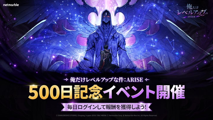 Netmarbleは、スマートフォンとPC向けアクションRPG『俺だけレベルアップな件:ARISE』のグローバル正式リリース500日を記念し、特別なイベントを開催する。