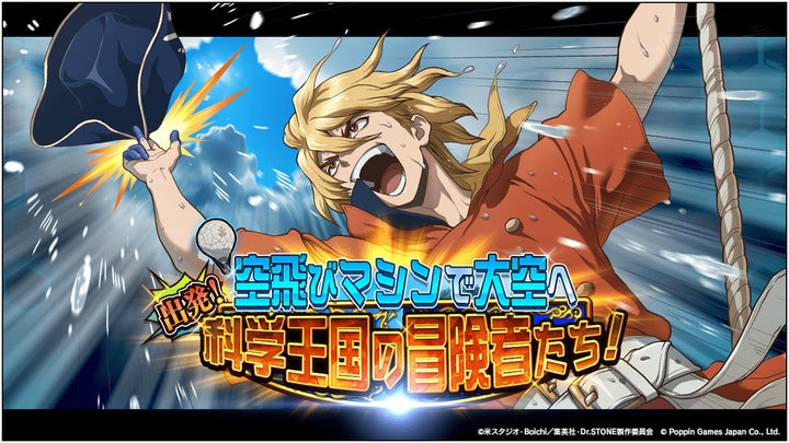 『Dr.STONE バトルクラフト』にて、復刻イベント「[復刻]空飛びマシンで大空へ 出発!科学王国の冒険者たち!」が開催される。
