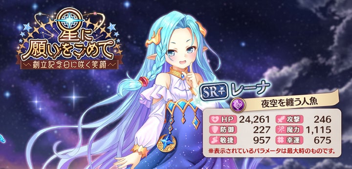 • 7周年記念イベント『星に願いをこめて 創立記念日に咲く笑顔』開催。SR+レーナ【夜空を纏う人魚】を獲得可能。