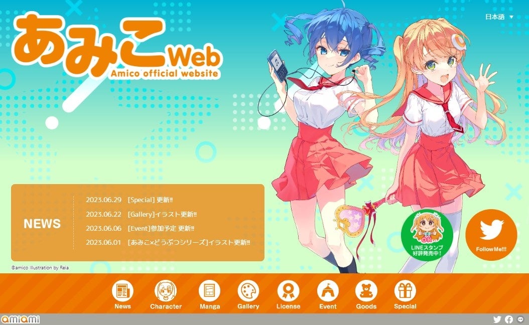 - LINEスタンプ、Twitterアカウント、あみこWeb