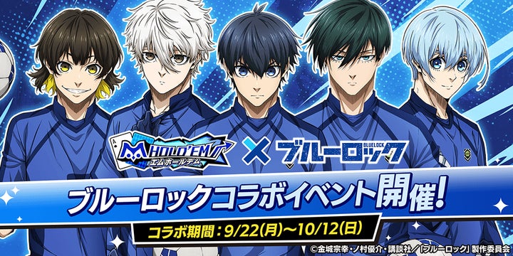サミー株式会社のスマートフォン向けテキサスホールデムポーカーアプリ「m HOLD’EM(エムホールデム)」が、人気漫画『ブルーロック』とのコラボイベントを開催します。